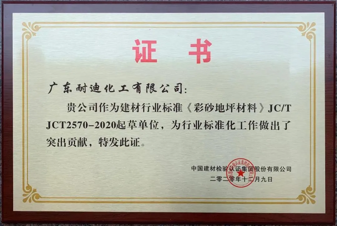 Nedis耐迪斯®自流平彩砂地坪系统 -参编标准/专利发明