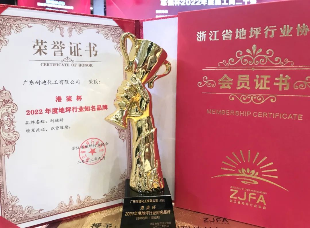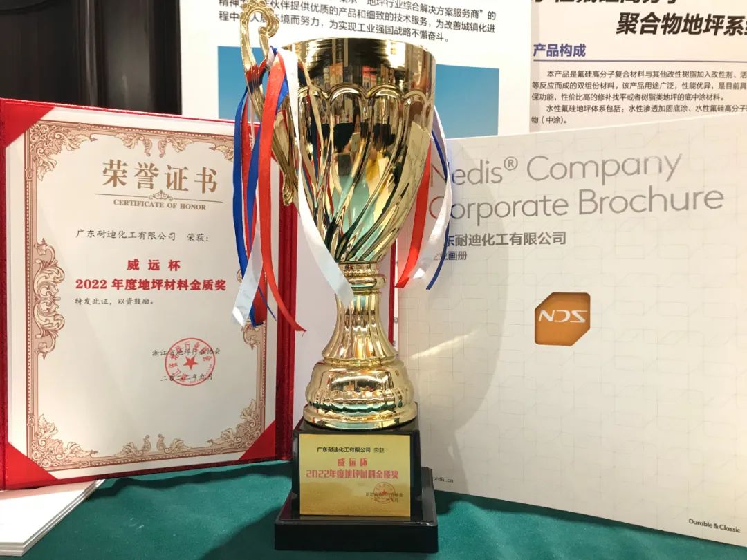 在此次大会上,耐迪公司荣获了2022年度 “地坪材料金质奖”和“地坪行业知名品牌”双项殊荣。