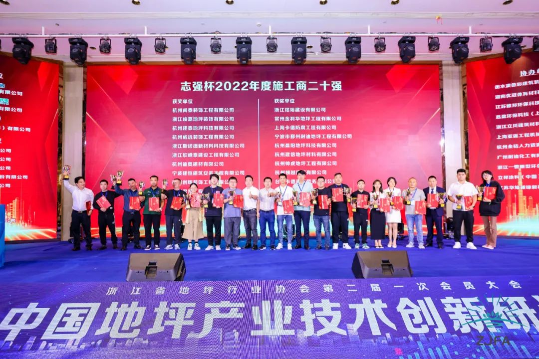 大会现场进行了2021-2022年度浙江省地坪行业协会“杰出贡献奖”、“地坪材料金质奖”、“知名品牌”、“施工商20强”、“技术创新奖”、“行业风云人物”等颁奖表彰,并与在场全员聚焦当下行业难点热点,商讨行业发展的困局,共议未来发展大计。