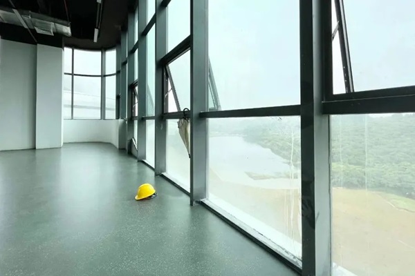 为迎合项目的调性,项目的生产车间、机房、办公室等区域地面统一设计成铁灰色,点缀以黑色金刚玉及其它高硬度颗粒,时髦的哑光面层,淡淡光泽舒适耐看。现代感十足的气质,配上整面的大落地格子窗,打造出妥妥的“工业风”。