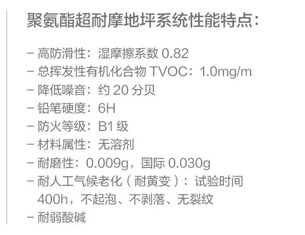 它表面致密,具有细小的颗粒纹理,不仅有防滑、美观的作用,还可以降低摩擦噪音,对污垢、油墨、普通酸碱,特别是轮胎等机械性损伤具有极好的抵抗性。其耐黄变和抗老性能极大延长地坪的使用寿命。