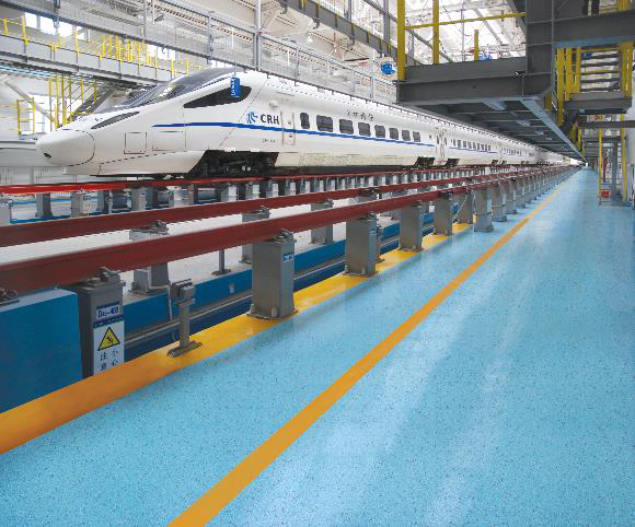 乌鲁木齐动车所,作为中国铁路乌鲁木齐局集团有限公司的重点设施,负责高铁动车组的检修与整备。在提升所内地面环境品质的项目中,乌鲁木齐动车所选用了耐迪斯自流平彩砂地坪。该地坪系统凭借其一体化成型、色彩丰富、耐磨耐压的特性,为动车所打造了美观且耐用的作业地面。