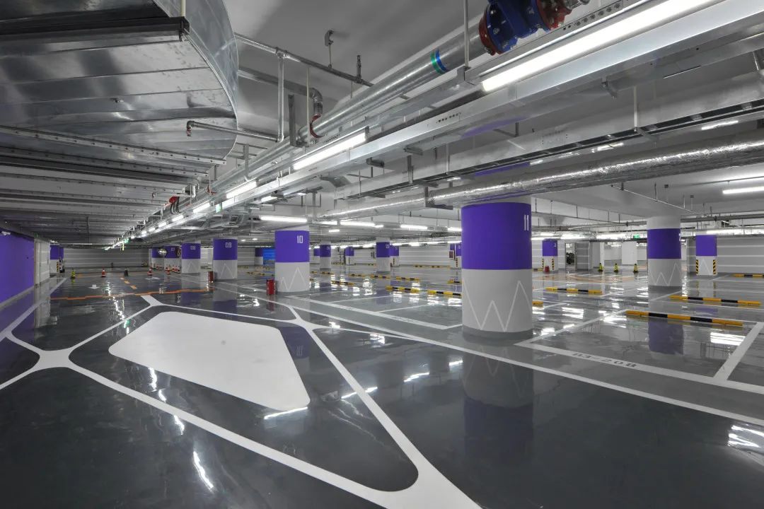 针对性地设计了两种车位地坪。环氧自流平表面平滑美观、绿色环保、漆膜强韧耐磨耐压;VIP车位采用了自流平彩砂,它拥有环氧自流平的全部优点,且装饰性更强更美观,满足业主更多个性化需求。